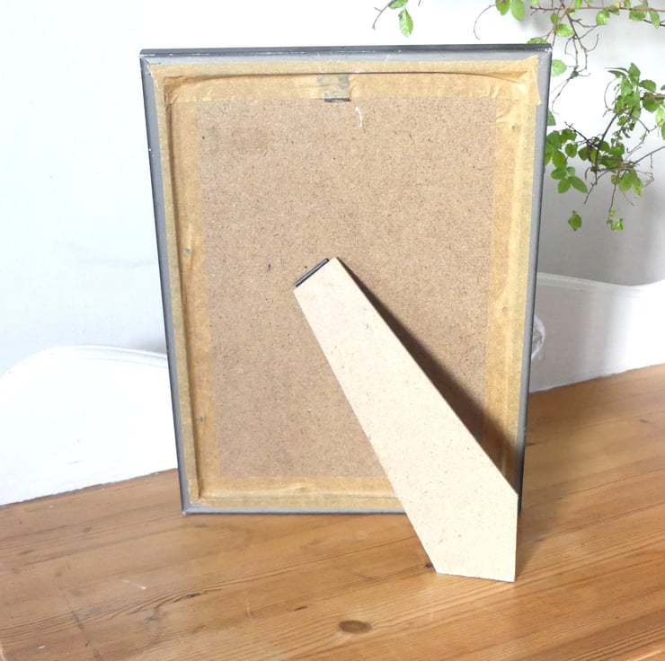 The painting is 4.75 x 6.75 inches, and the total size with white mount and black frame is 9.50 x 13 inches. The Painting can stand freely or be hung on the wall.