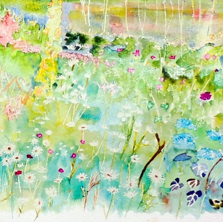 I aimed to convey a sense of untamed beauty, allowing the exuberant forms and vivid colours of the garden to dance across the composition, gently pushing the house and treeline into the distance. The result is a light, buoyant atmosphere full of life and movement.