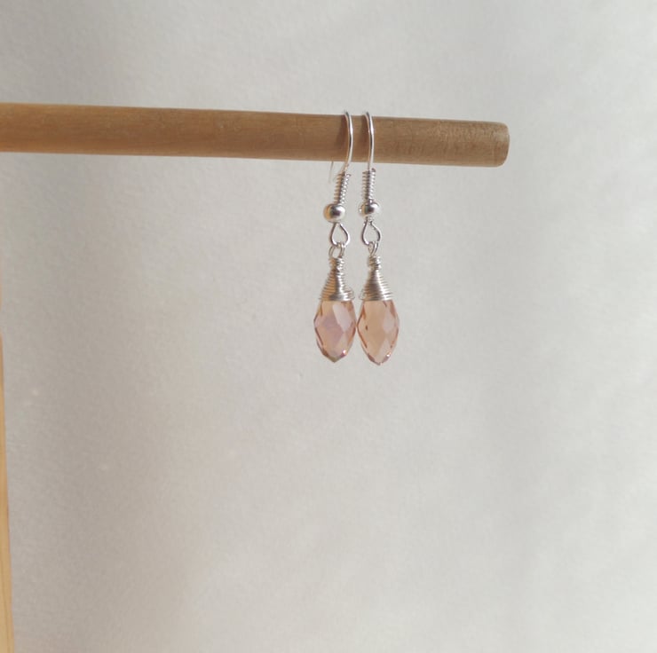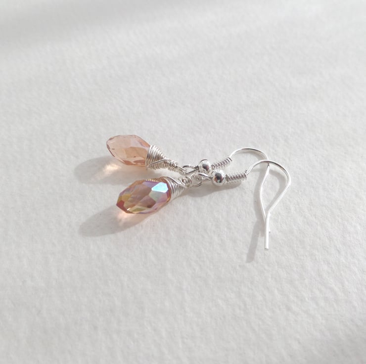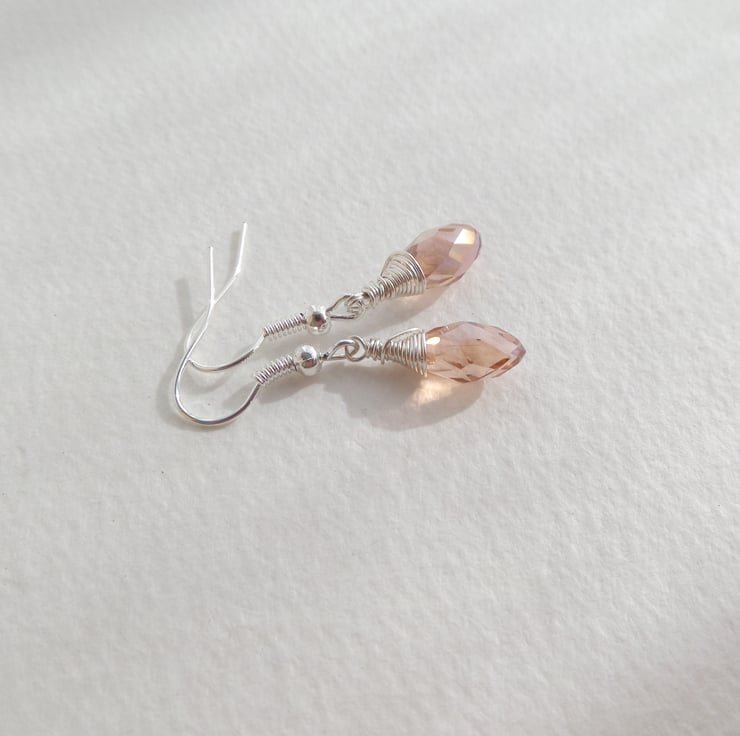 I use fine sterling silver to wire wrap these briolette cut crystals - rare for me to have a spare pair to list for sale :)