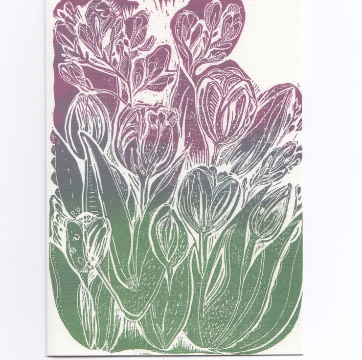 Tulip and Freesia floral print greetings card.