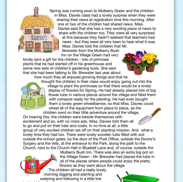 A lovely little story book with 33 Springtime stories about the Mulberry Green characters and all of the adventures they have with their friends. Each story is just long enough for bedtime. Suitable for children 3-8 but enjoyed by anyone young at heart. Read about the adventures of Maisy and Mo, Billy Spraggs, Violet, who is always in trouble and all of the other little characters in Miss. Davies’ class at Mulberry Green School.