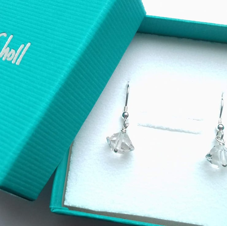 Cute dangle earrings made from Herkimer diamonds, each stone has been individually attached with a hand bobbled sterling silver wire. This allows the stone to move freely creating wonderful movement and light reflections.