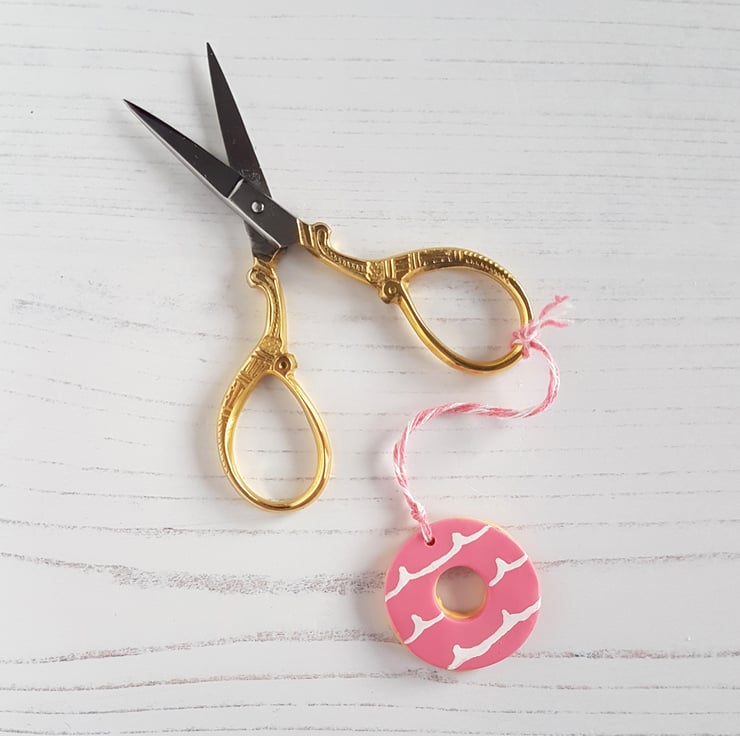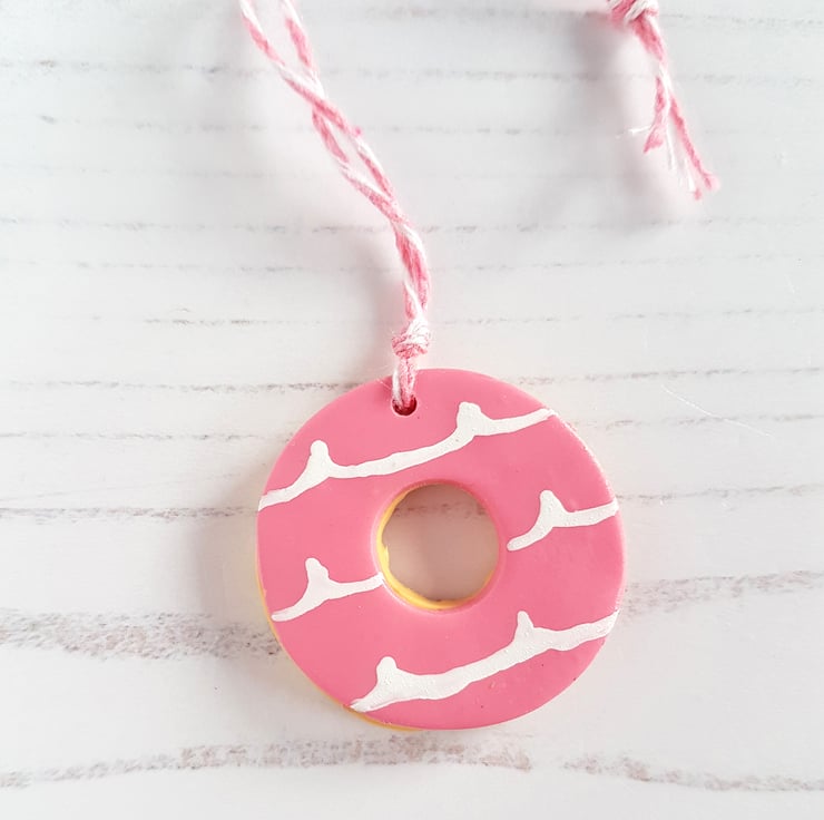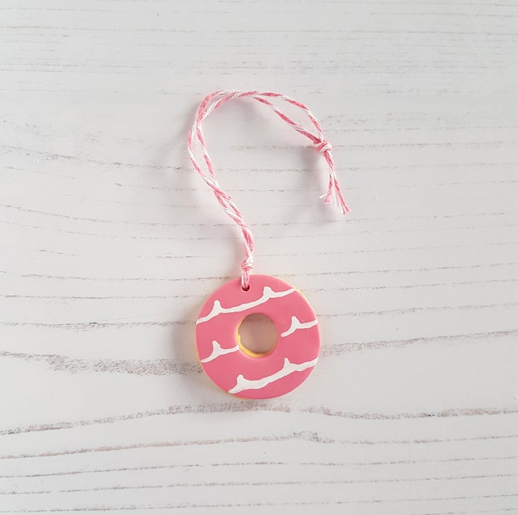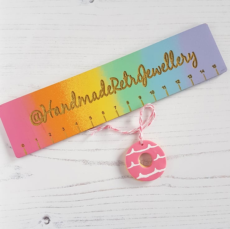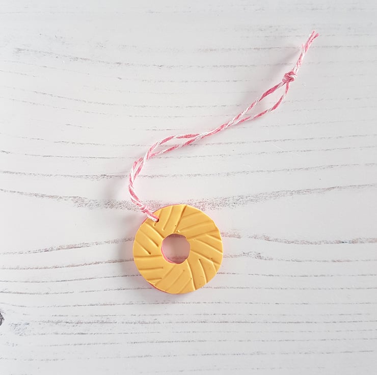 This is a cute little iced ring biscuit charm, hand made from polymer clay, in your choice of icing colour (five colours available, please see options).