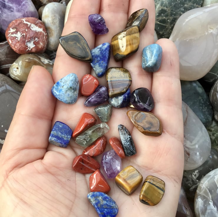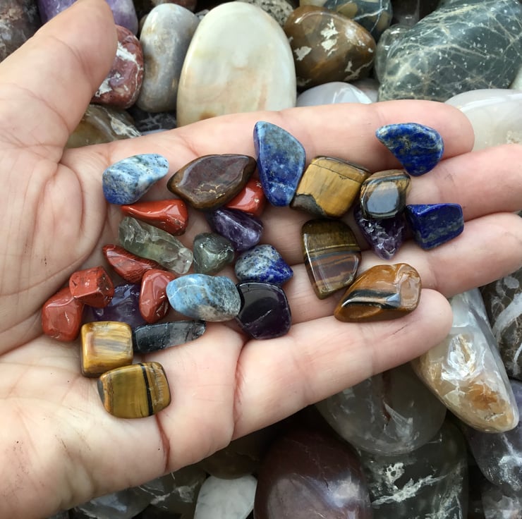 As mentioned previously, not all the stones included are officially gemstones, but pretty none the less, this selection does include, tigers eye, amethyst, red Jasper, agate, sodalite and lapis.