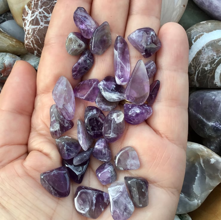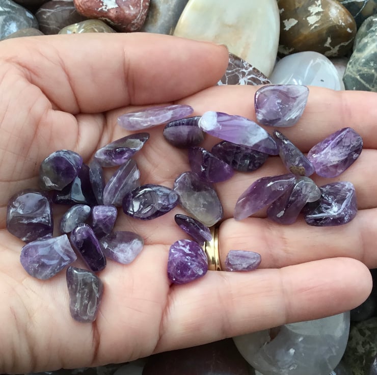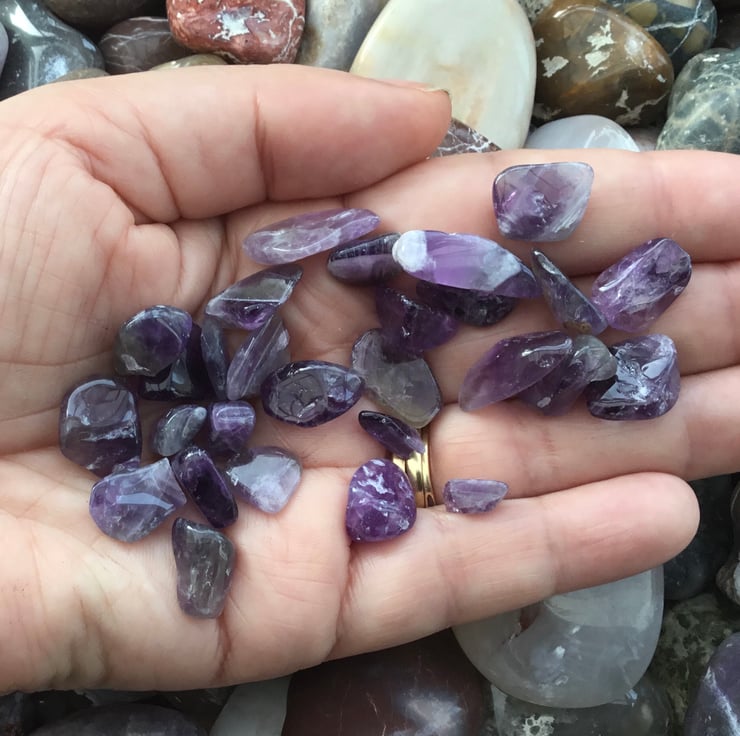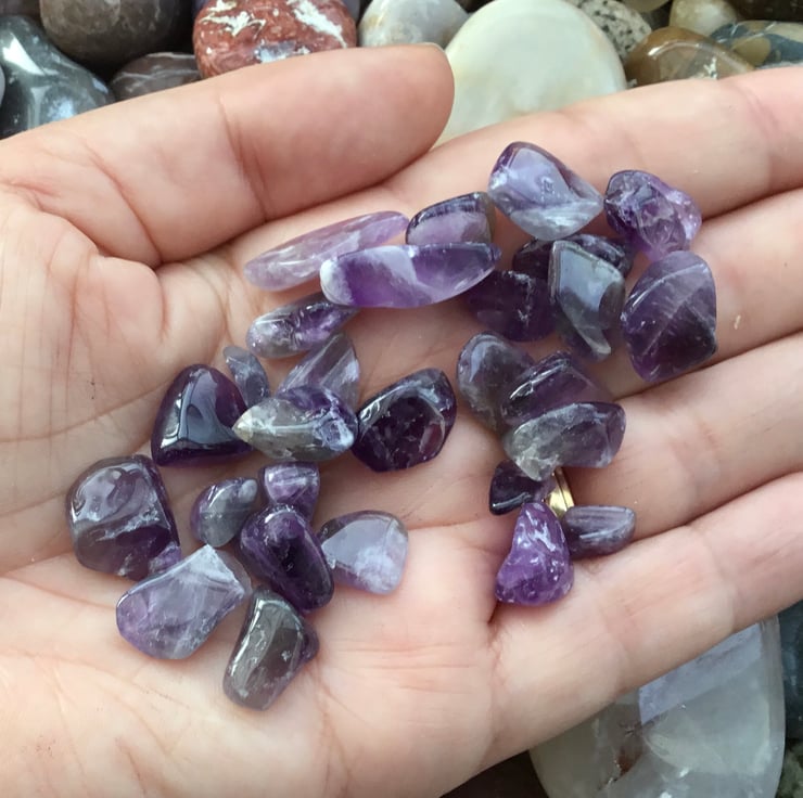 This little collection of amethyst stones, looks like a little handful of purple droplets.