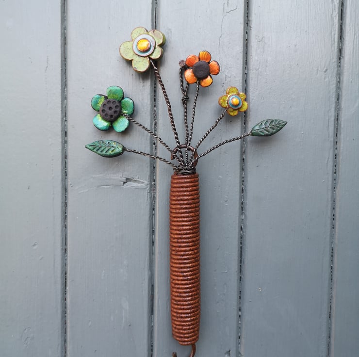 I found a box of rusty old springs on my husbands scrap pile here on the farm..im having great fun turning them into a floral wall hanging!