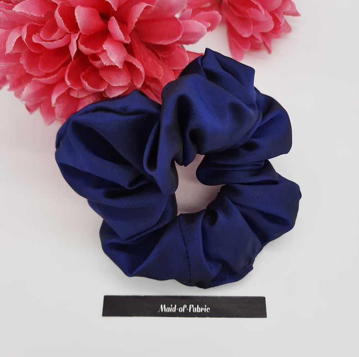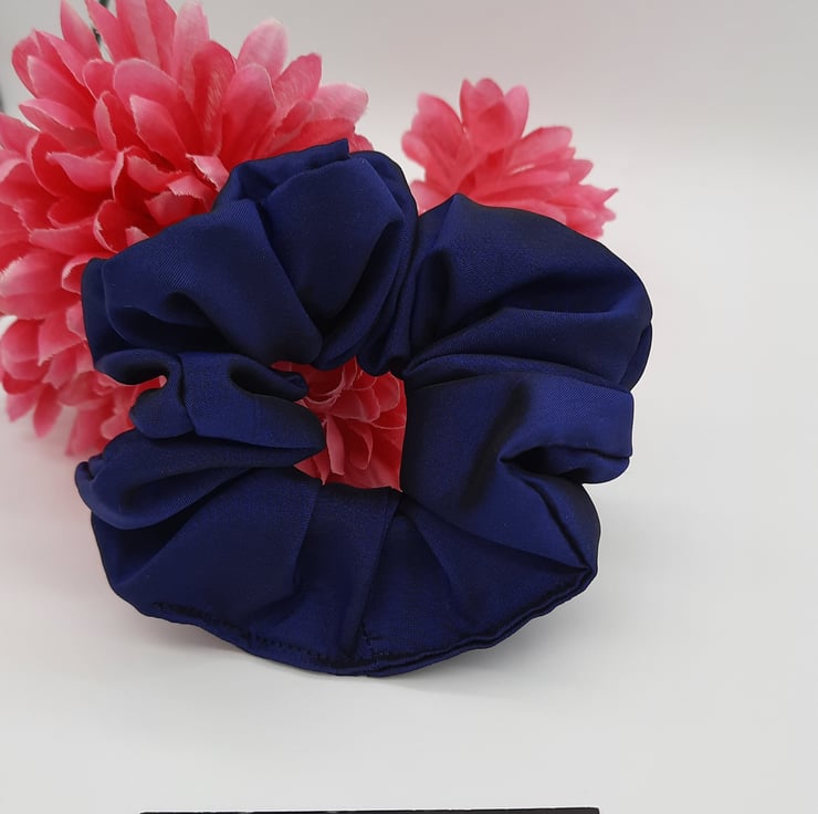 Navy blue hair scrunchie band.