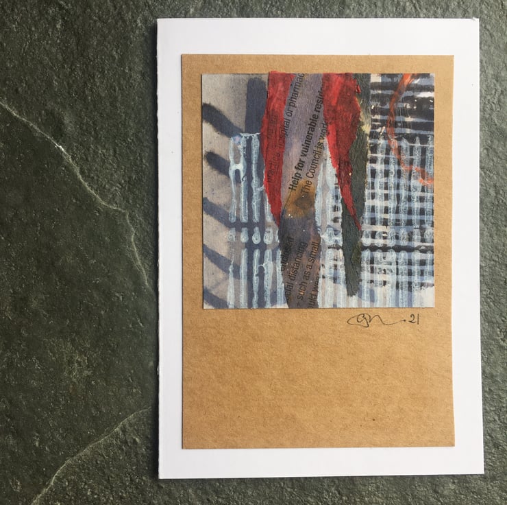 It can be sent as a card, (or it can be framed in a 10.5cm x 15cm frame - IKEA sell several of a suitable size). The artwork is mounted on Kraft card and white card.