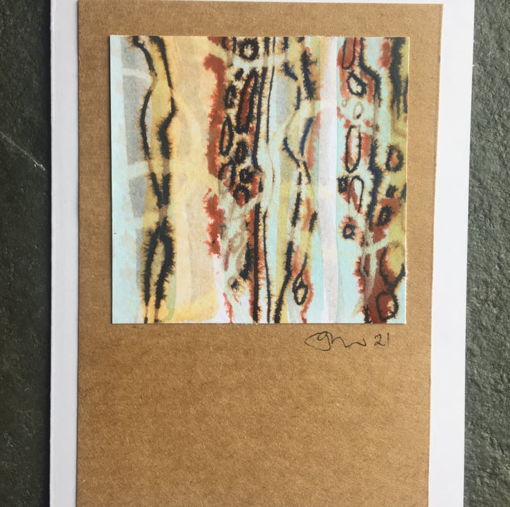 Making my one of a kind collages and watercolours is an intuitive process and a response to my surroundings and environment, I am fascinated by patterns in nature, especially those of bark on trees and lichens that populate them. This piece is inspired by my musings on these tings.