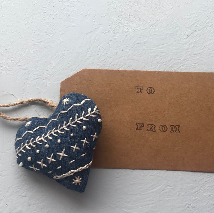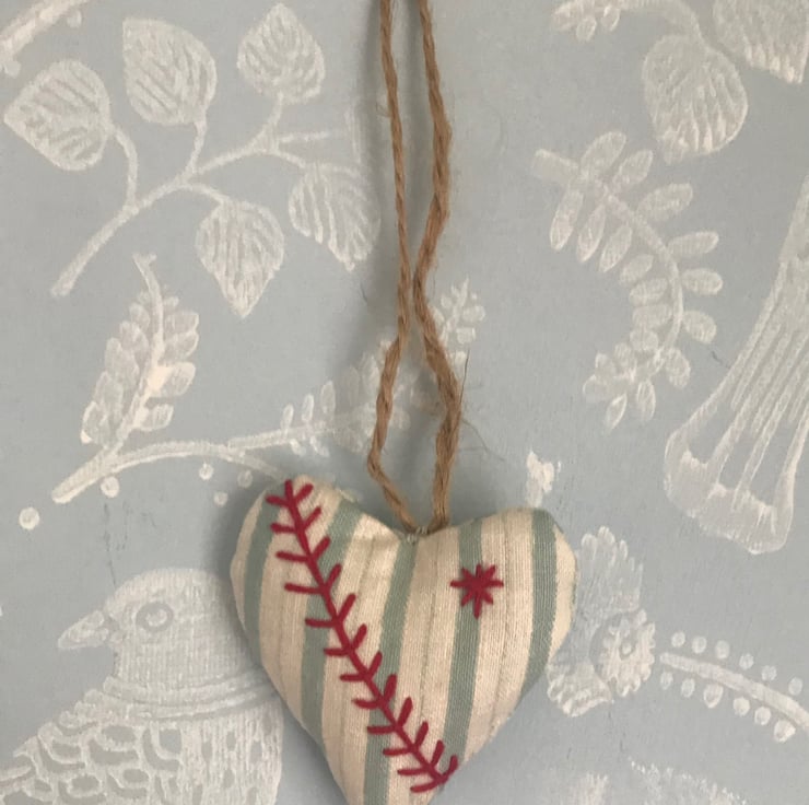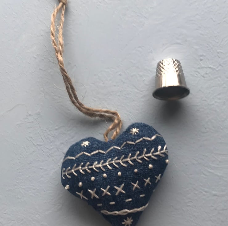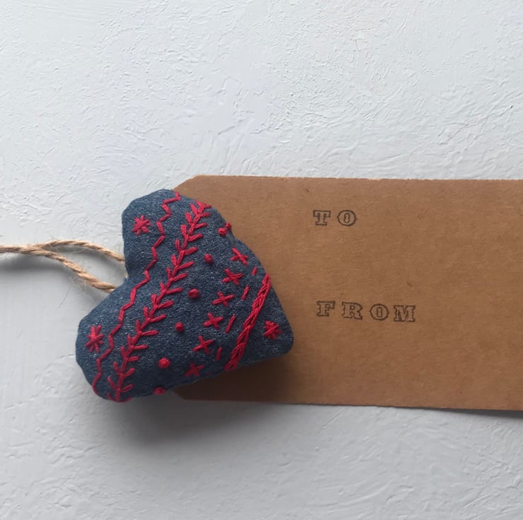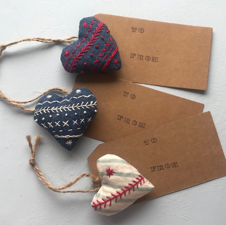 I have embroidered and hand sewn these little hearts. They are embroidered on one side, filled with lavender and toy stuffing and each one measure 5 cm across.