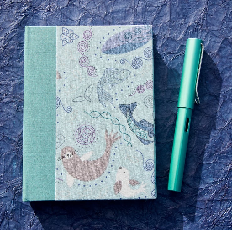 A6 Quarter-bound Notebook with fabric cover, coordinating spine and lined paper.