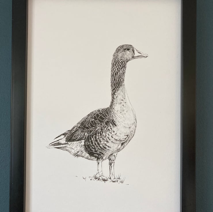 An Original, A4 Pen and Ink drawing with some pencil shading of a proud Goose.