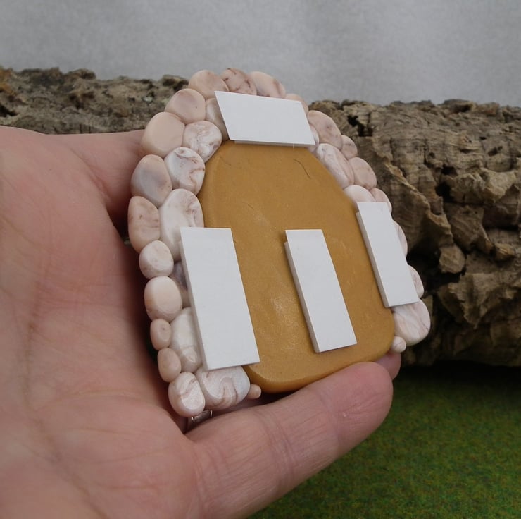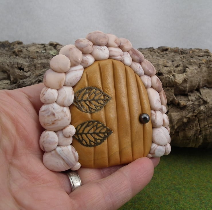 This is a 'one of a kind' creation having been entirely handmade without the use of moulds here at my studio on the Sussex Coast. Modelled with Prosculpt polymers, painted with heat set paints before sealing with lacquer, The door is three inches high and can be attached to any flat surface with the fixing pads on reverse.