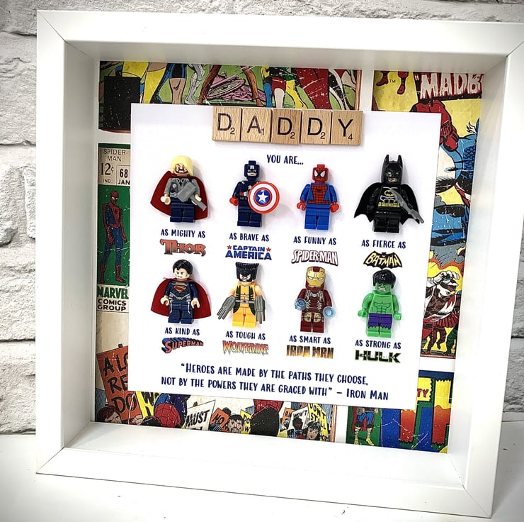 Calling all Superhero Fans..... give the perfect gift with a made to order personalised Superhero inspired Minifigure Picture Frame, the perfect gift for any occasion.