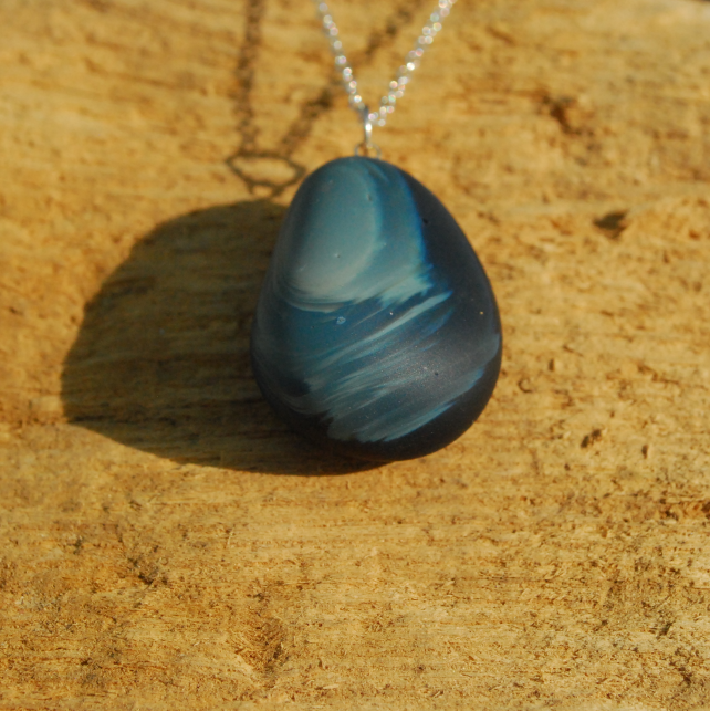 Our jewellery is individually hand made in Chudleigh, Devon. We collect our materials ourselves, mainly from local beaches. Each piece of glass is unique, so each piece of jewellery is unique. We only use materials which have rounded edges, which is why we tumble pieces which have rough edges in sand (this continues the process begun by the waves) until they are smooth.