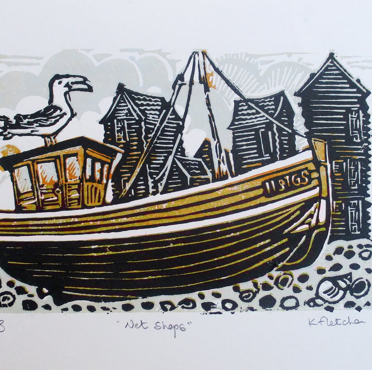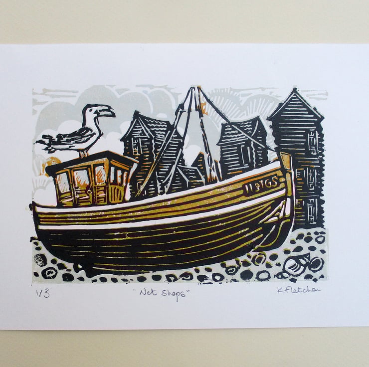 The Net Shops Hastings Original Hand Pressed Linocut Print