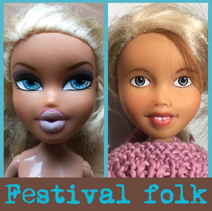 Sally was a second-hand Bratz dolls who have been given a new lease of life as a unique, age-appropriate Festival folk doll.