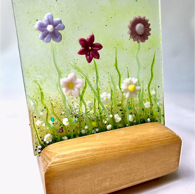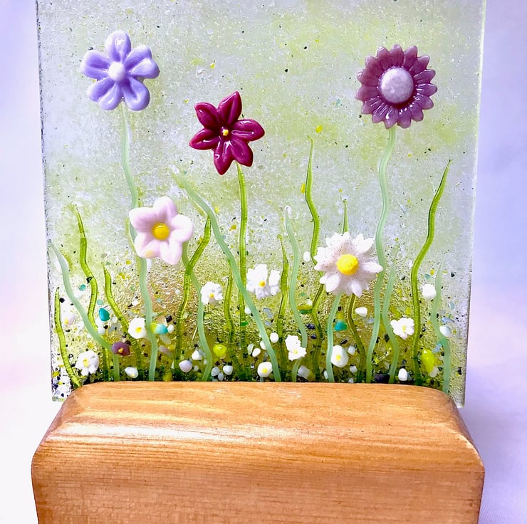 This is a variation on my very popular meadow pieces. This accompanies the candle holders, arches and waves. Each piece is slightly different and they continue to change each time I buy more glass supplies and am enticed with other colours!