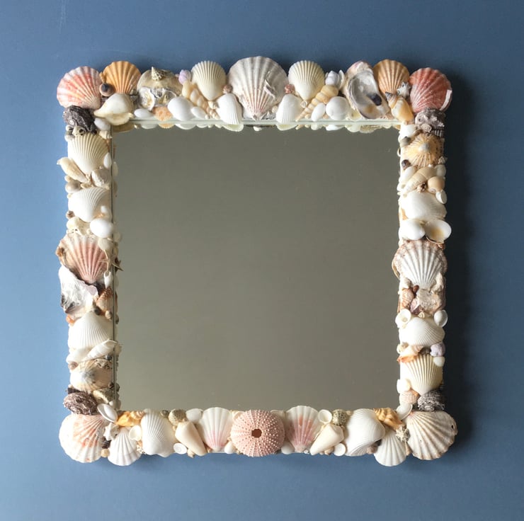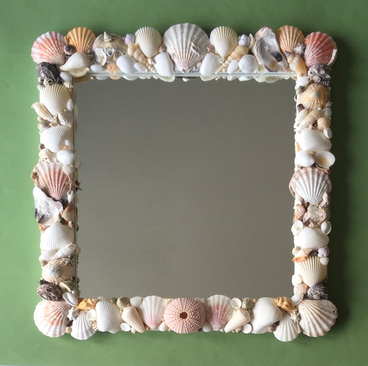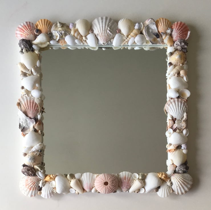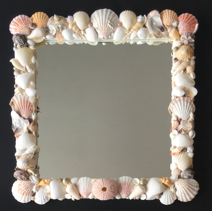 Unique and individually made handcrafted natural seashell mirror
