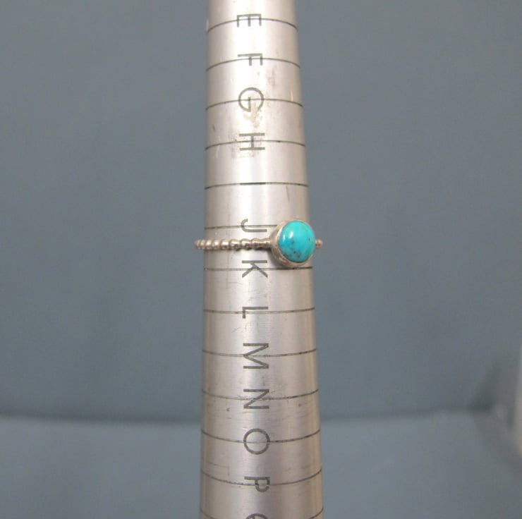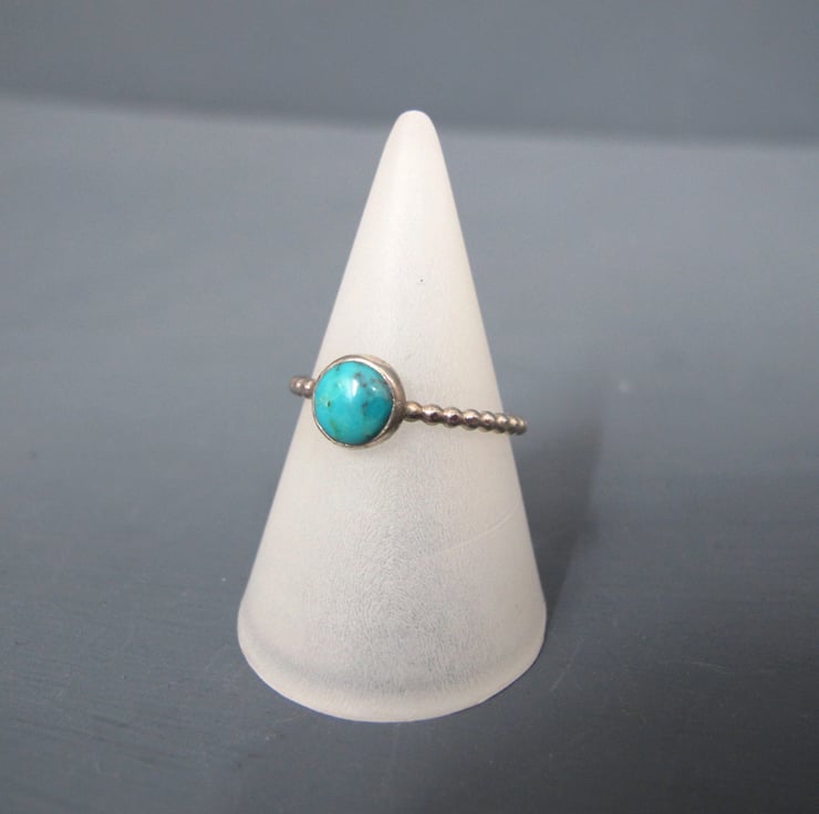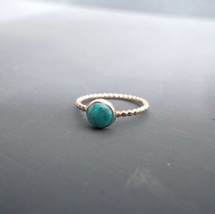The turquoise gem is set into a simple setting and a bobble ring band all handmade in sterling silver.