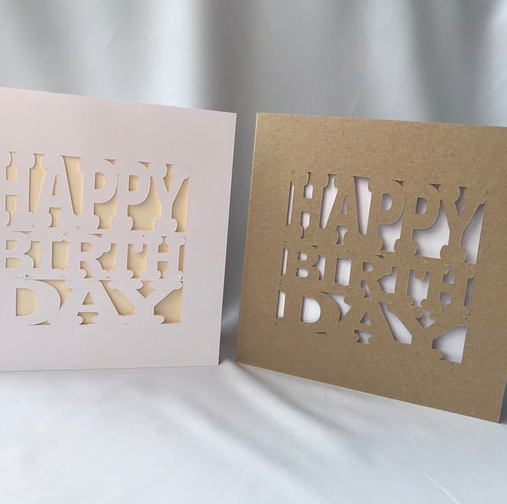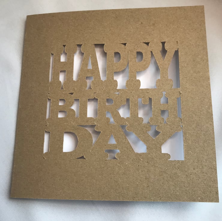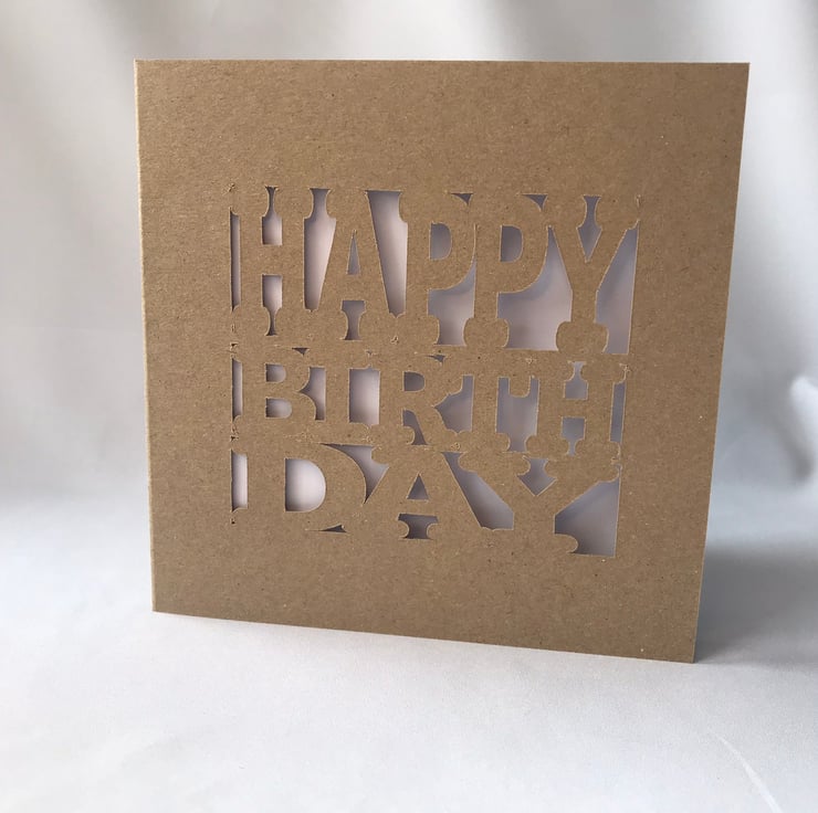 The happy birthday cards are made in white or brown kraft card and comes with an envelope in white or brown kraft colour the kraft card is 100% recycled card and in a biodegradable cello bag.
