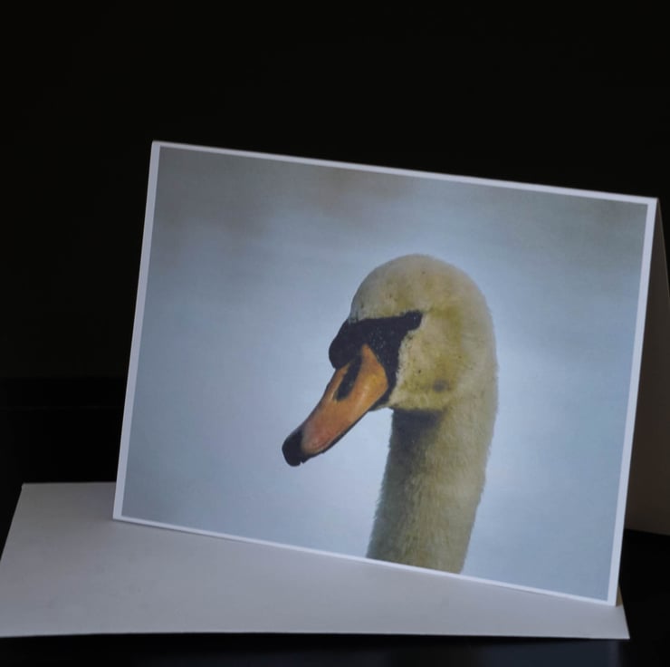 Handmade photo cards featuring original photographs taken by myself (Sue Vaizey-Moore . This card features Stanley the Swan!