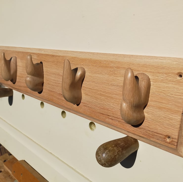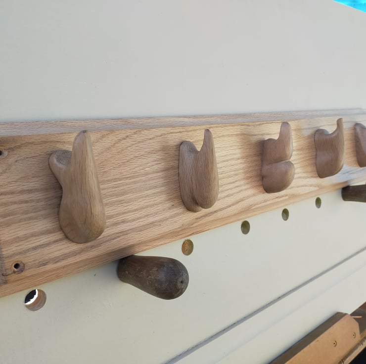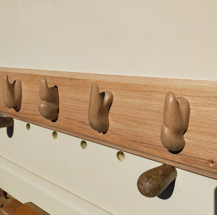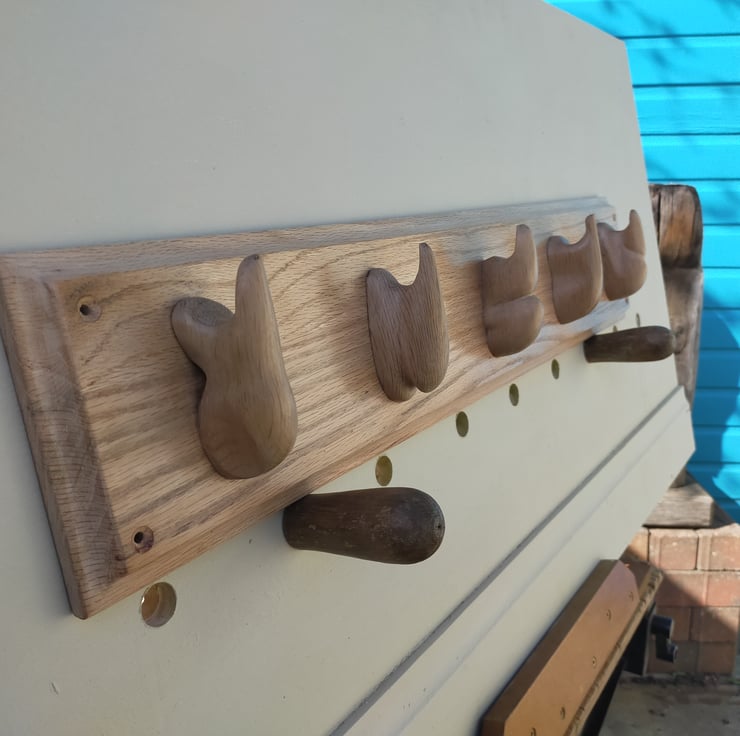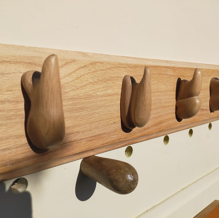 When you search across the internet for something like "reclaimed wood coat rack" the vast majority of what you find will be metal coat hangers imported from China, screwed to a piece of reclaimed timber. For me that wasn't enough: the reclaimed hardwoods I use are incredibly durable, certainly enough for coat hooks, and allow me the opportunity to carve them into individual sculptural and beautiful shapes.