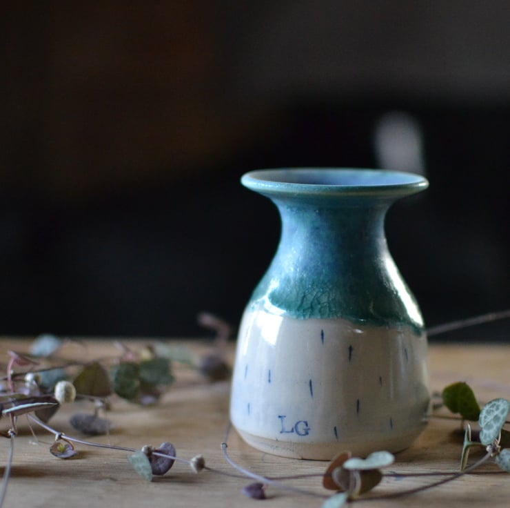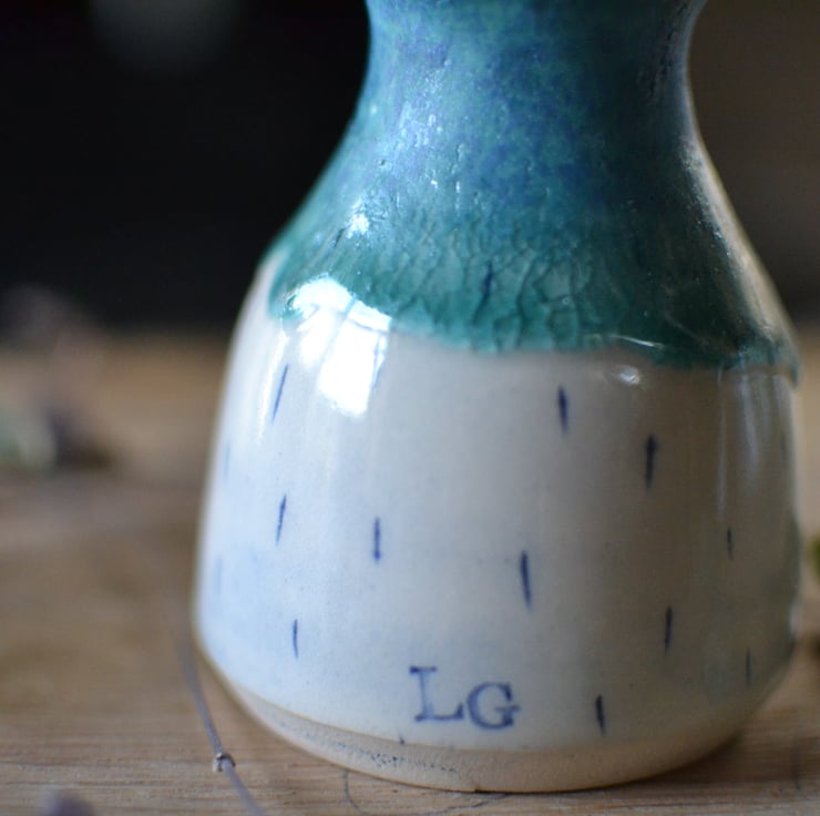 Inspired by a desire for sustainable living, this hand thrown Solstice vase represents a slower way of life and is made from natural materials using as few resources as possible. With a mix of glazes they have a simple, undulating design that reflects the patterns of the ocean. This forms part of my Solstice collection of handmade pottery.