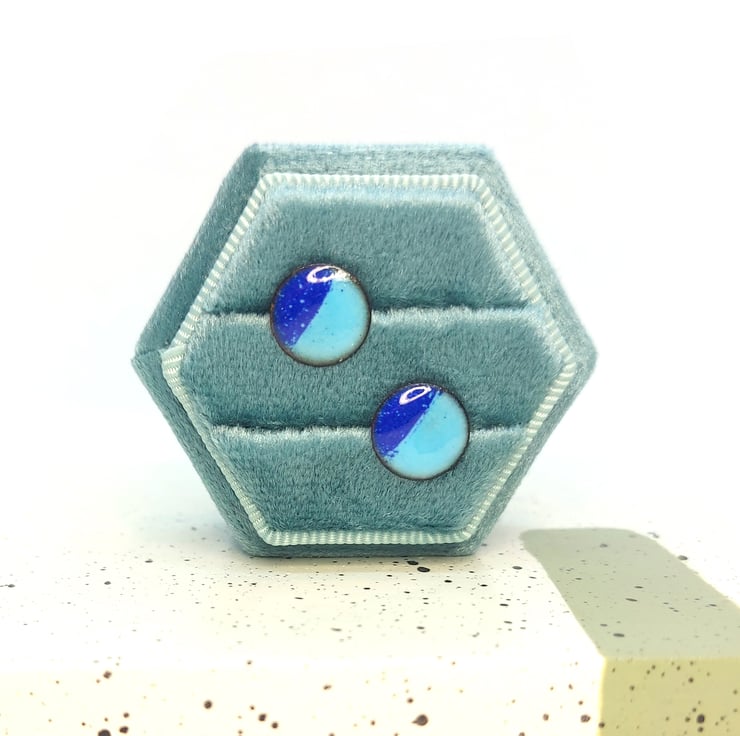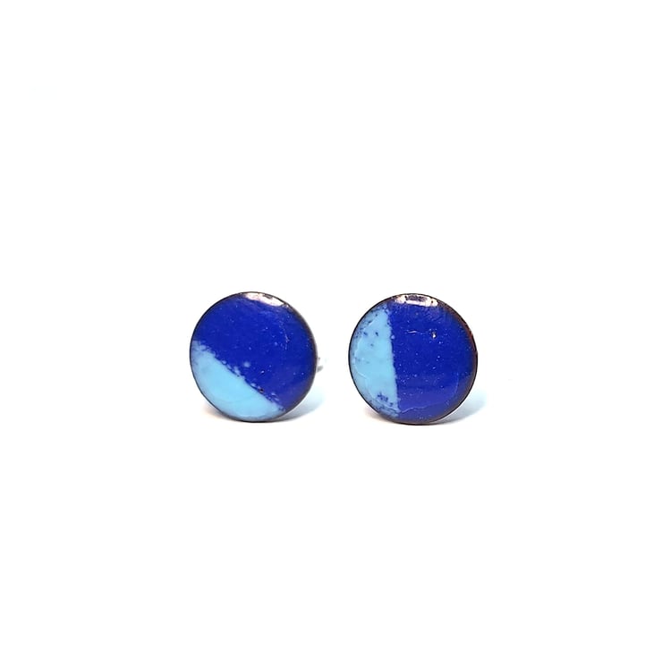 These colorful round enamel stud earrings have 2 tones of blue for a beautiful contrast.