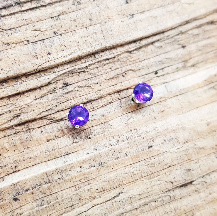 These earrings are made in solid silver with 4mm amethyst gemstones.