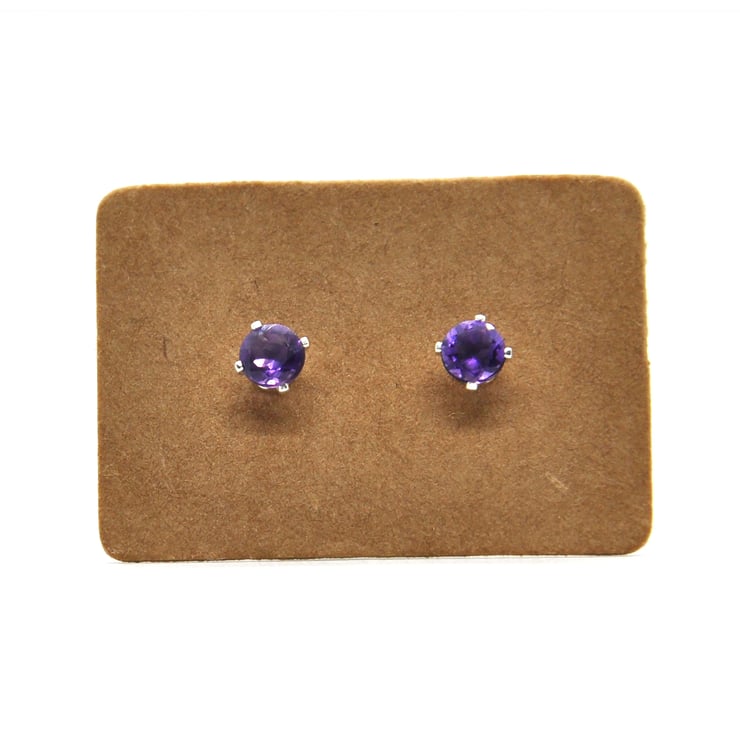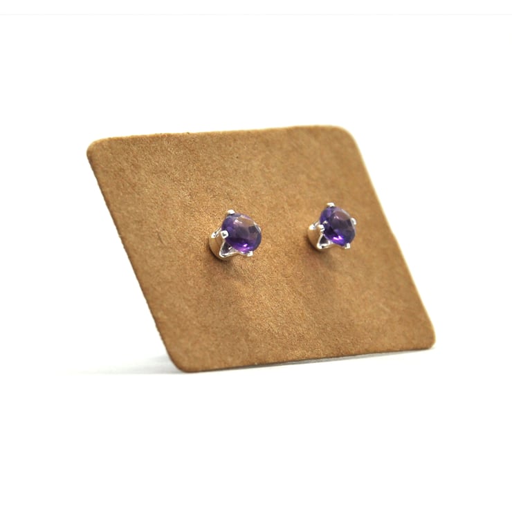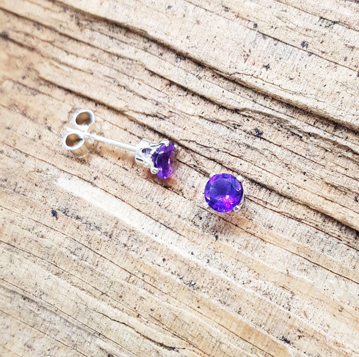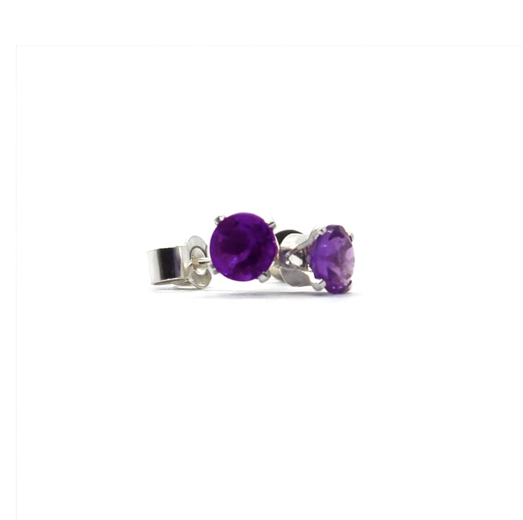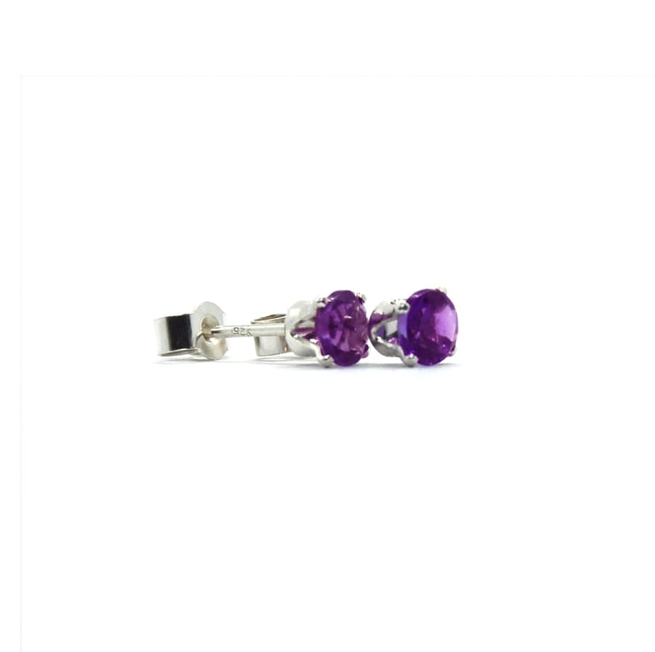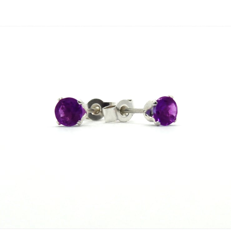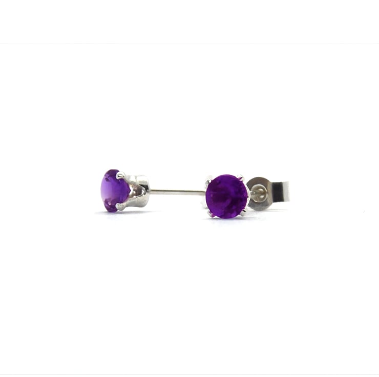 These earrings are made in solid silver with 4mm amethyst gemstones.