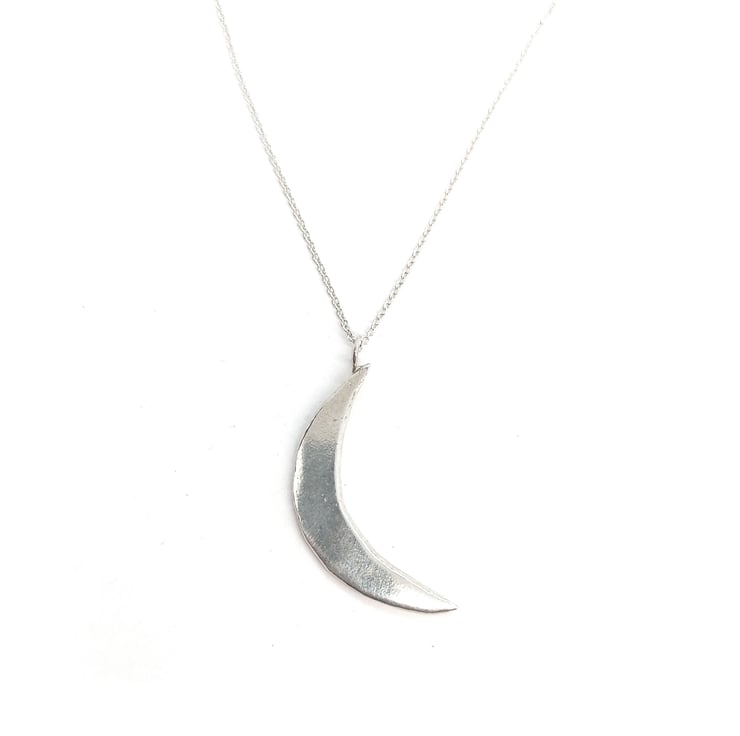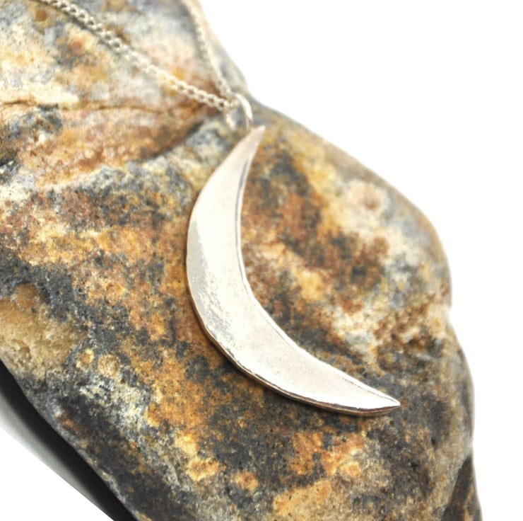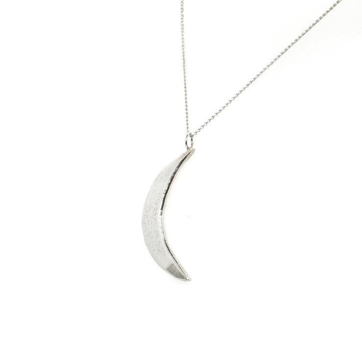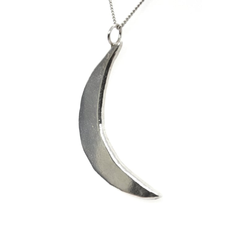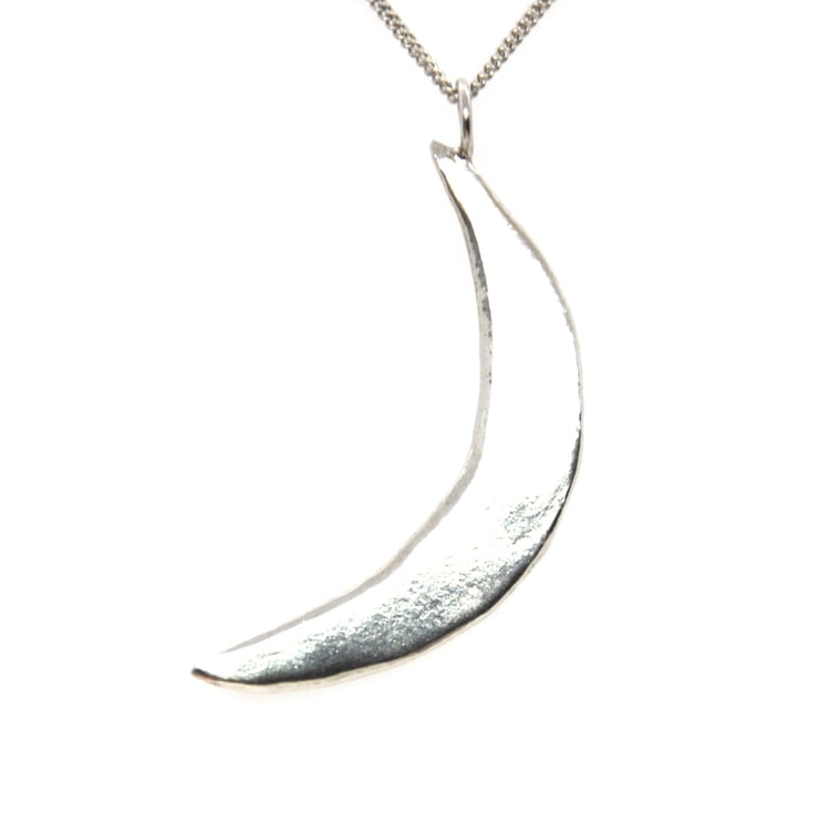 A sliver of the moon shimmers in silver. This pendant is made in solid recycled silver. It's perfect for any outfit and looks great layered with other necklaces.