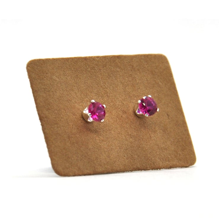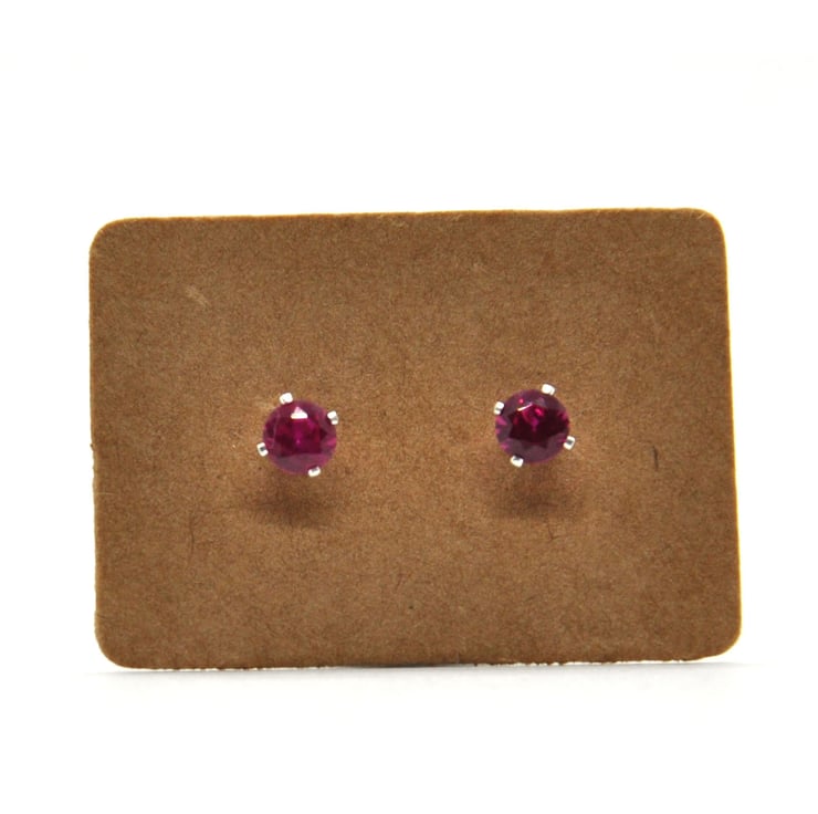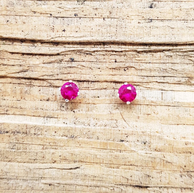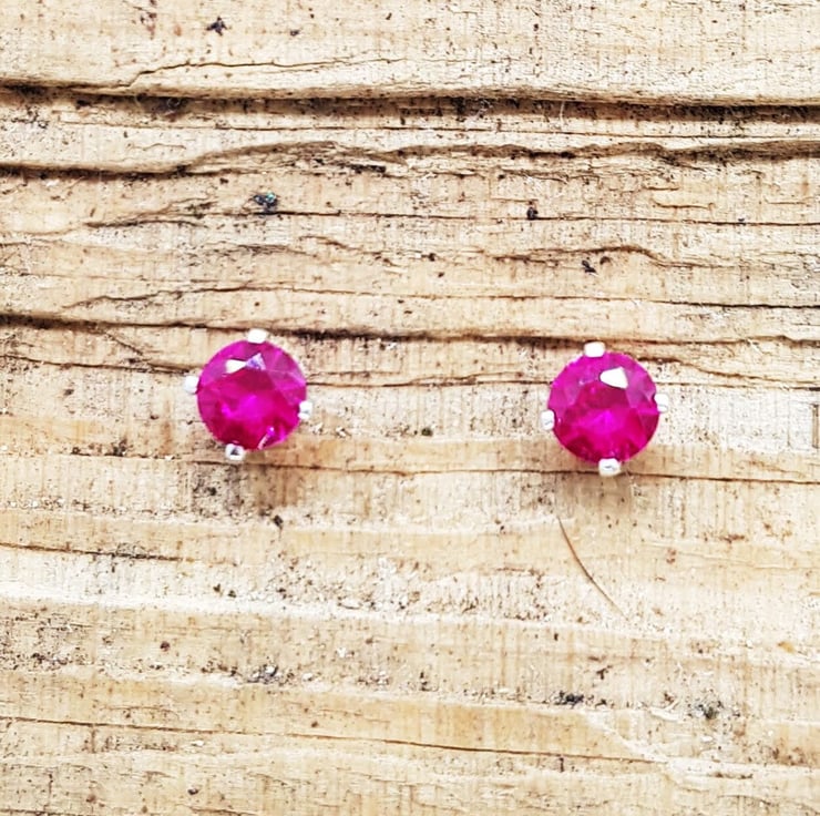 These gorgeous stud earrings are perfect to wear, adding a drop of colour and sparkle to your ears. Made in solid silver, these earrings have synthetic faceted red rubies in a four claw setting. The rubies are red with slight pinkish tones.