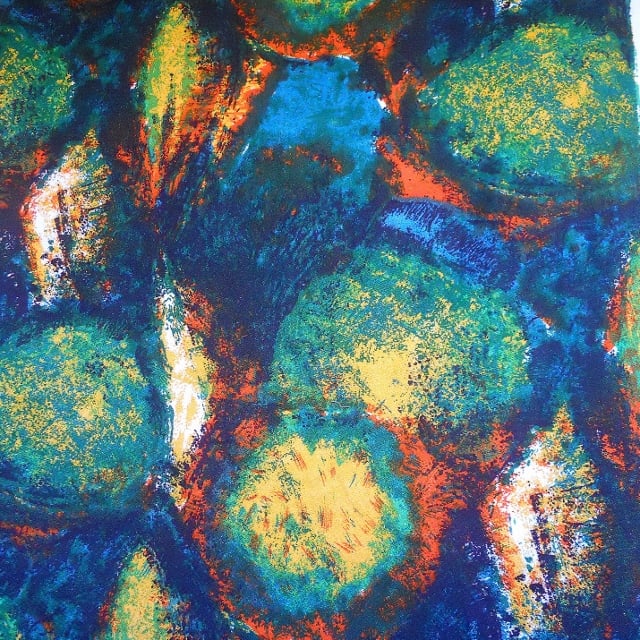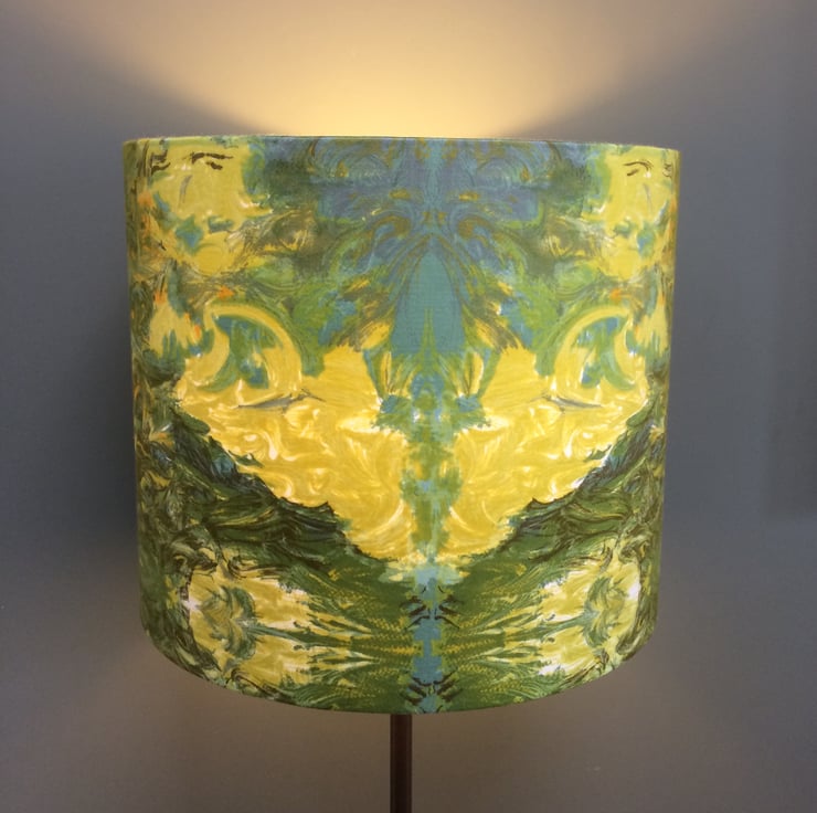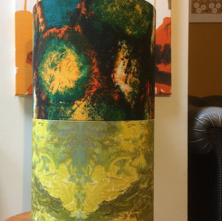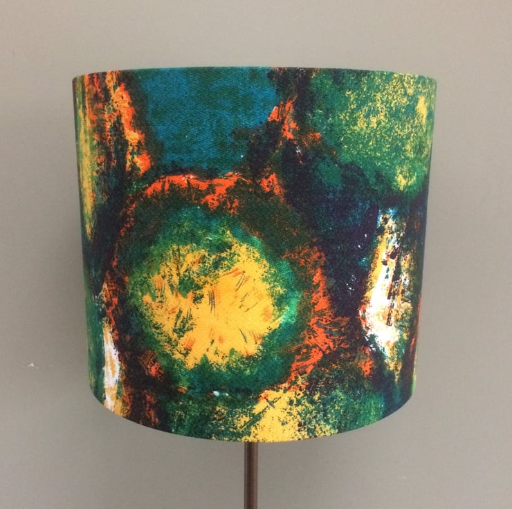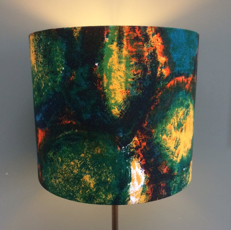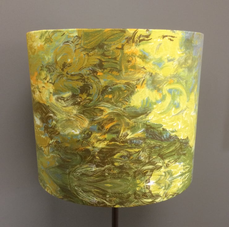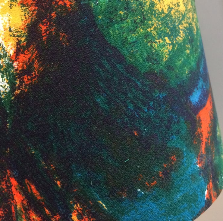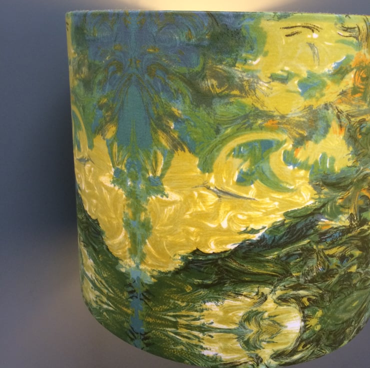 1. Yellow Abstract Hans Juda Vortex VIntage fabric Lampshade - extremely rare and hard to source Heals fabric!