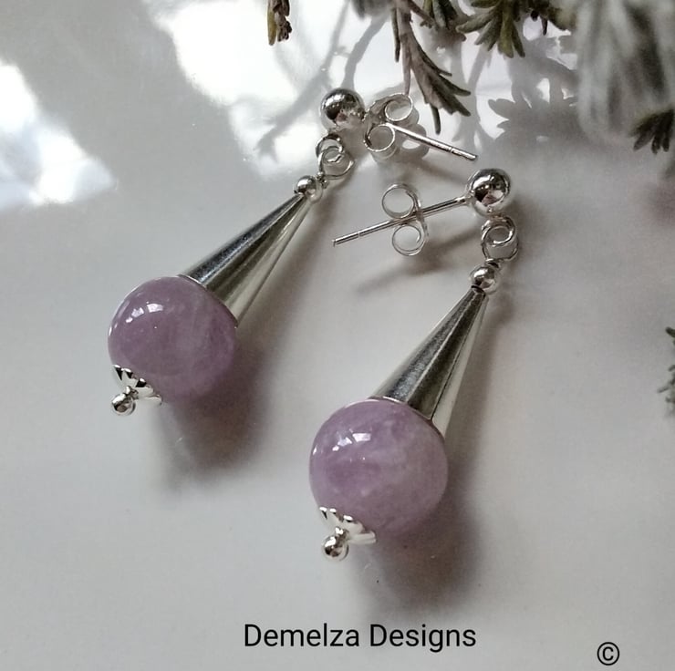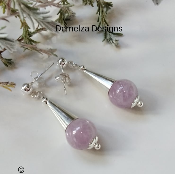 A beautiful pair of earnings designed and hand crafted in Cornwall using two 10mm genuine kunzite gemstone rounds totaling 15.20cts in weight. All other components used are 925 sterling silver.
