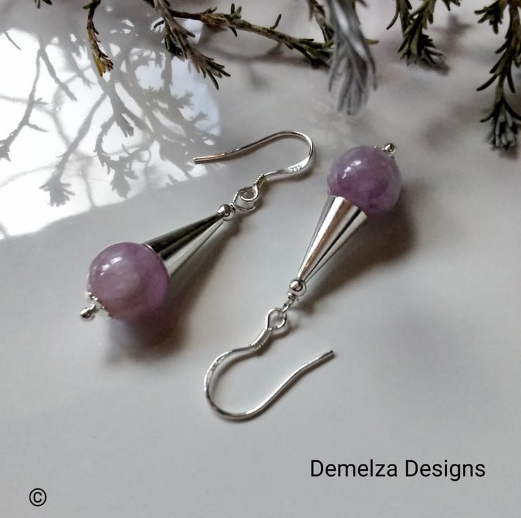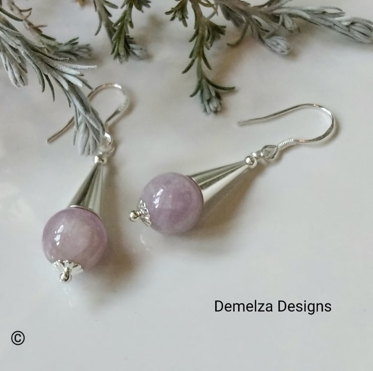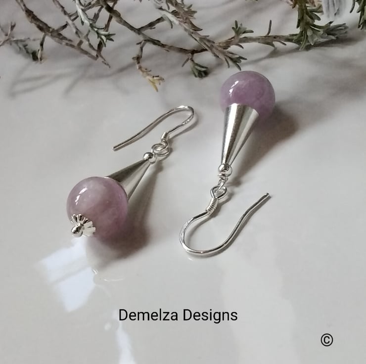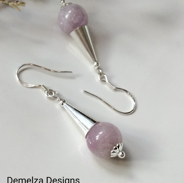 Designer Natural Kunzite Sterling  Silver Coned Earrings