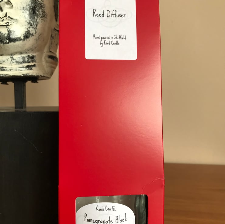The diffusers are 100ml highly fragranced oil which comes in a thick clear round diffuser glass bottle with a gold cap, included are 6 reed rattan sticks in wood or black and a red gift box is included.