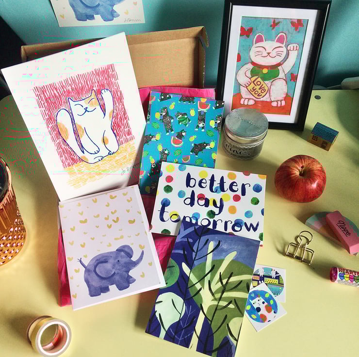 All items are © Jo Brown and will be sent in small box which should fit through most letterboxes.The contents of the box would cost £20 if purchased individually.