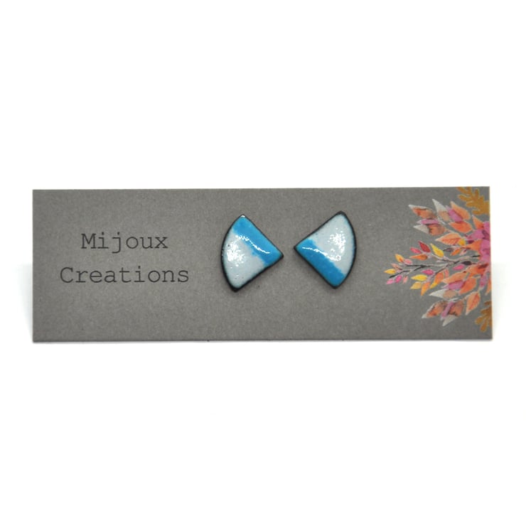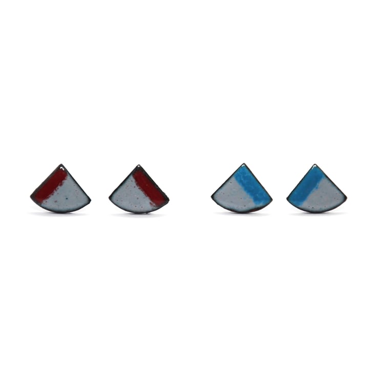 Bright colourful stud earrings handmade with love. These earrings have a stripe of teal along one side on a light grey background. So add some fun to your day.