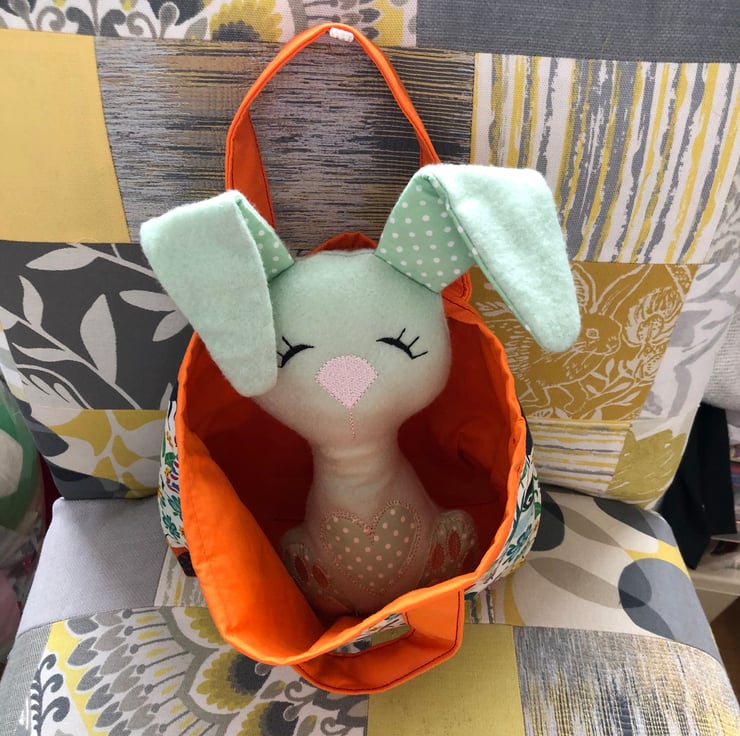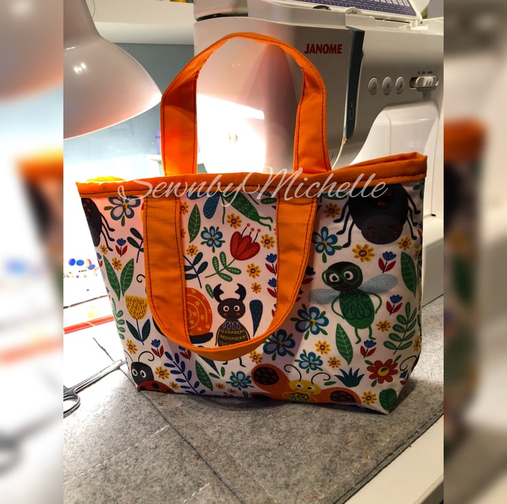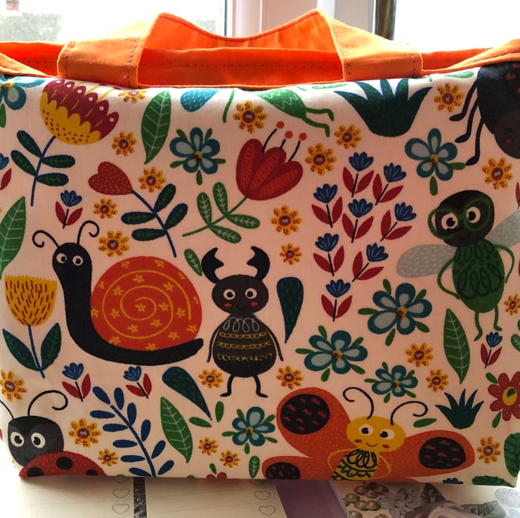 This little basket has been handmade by me using this gorgeous snail and bugs fabric as shown.