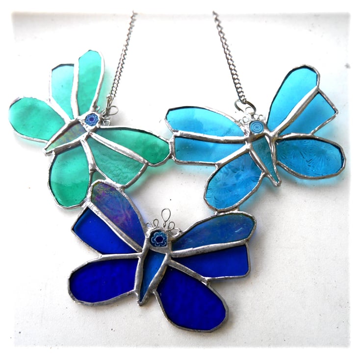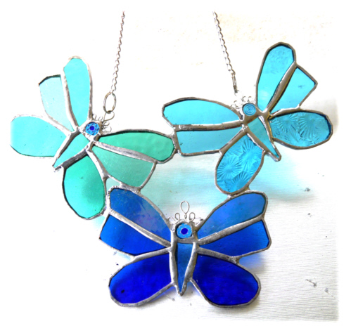 I've made three little butterflies joined, so they fly all together, into a pretty shape as a single suncatcher.