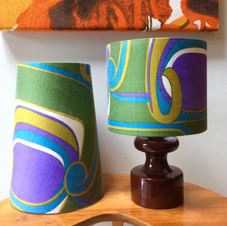 MOD OP ART , SPACE AGE Purple Green 60s 70s Vintage fabric Lampshade option - I had some of this pattern in Citrus colours and it was VERY popular so I couldn't resist this version !