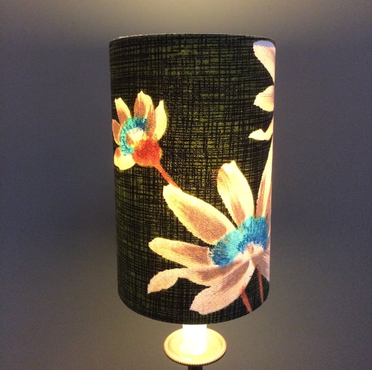 Cheerful BIG White RETRO Daisy on Green 60s Vintage Fabric Lampshade option