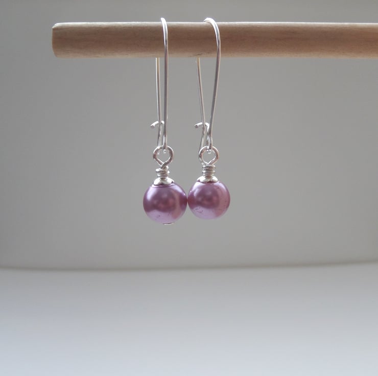 On my standard top quality kidney wires, these are 8mm glass pearl earrings, simple and elegant. A super useful addition to your collection, these simply go with anything from jeans to an evening dress.