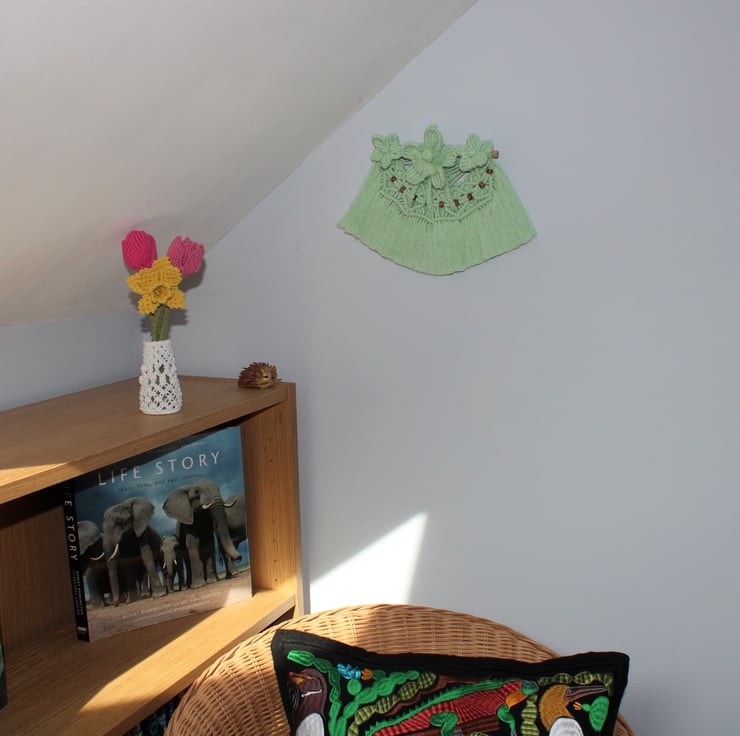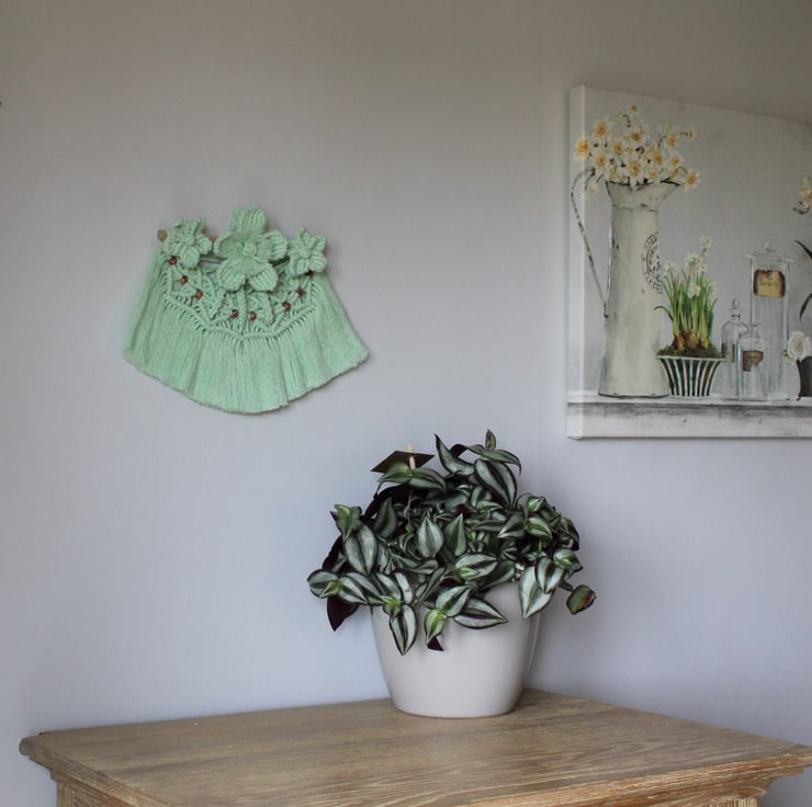 This pretty wall hanging has been made using What Knot 100% recycled mint green cotton.
