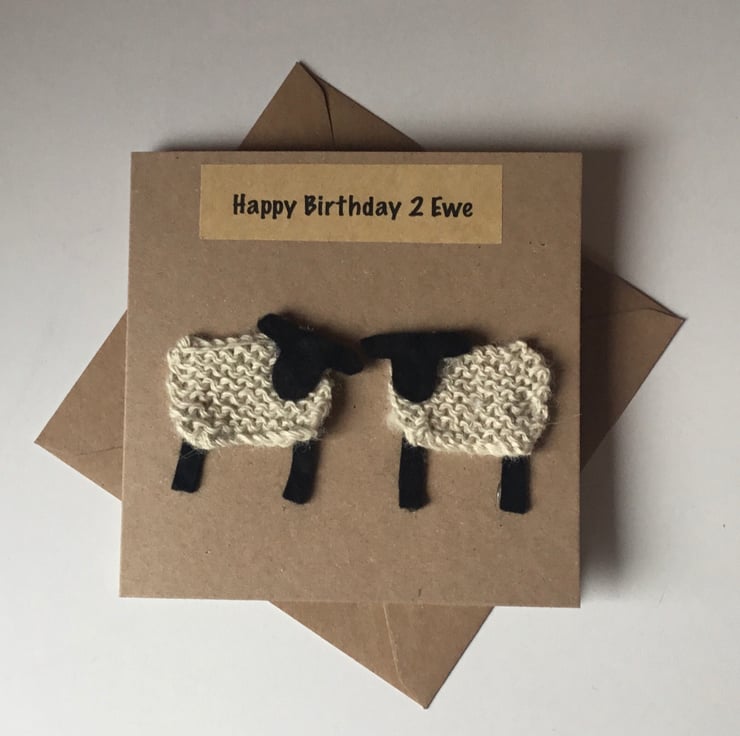 Handmade from recycled card, birthday card with knitted sheep. Suitable for anyone.