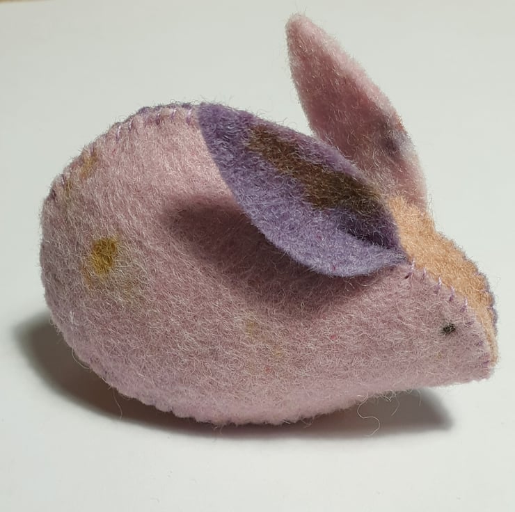 For one rabbit you will need 3 colours of felt sheet, in light, medium and dark, a minimum of 8x7cm / 3.5x3in of each. The photographs show rabbits made from my naturally-dyed wool felt with speckles, you will find this in my shop if you want to create a similar look.