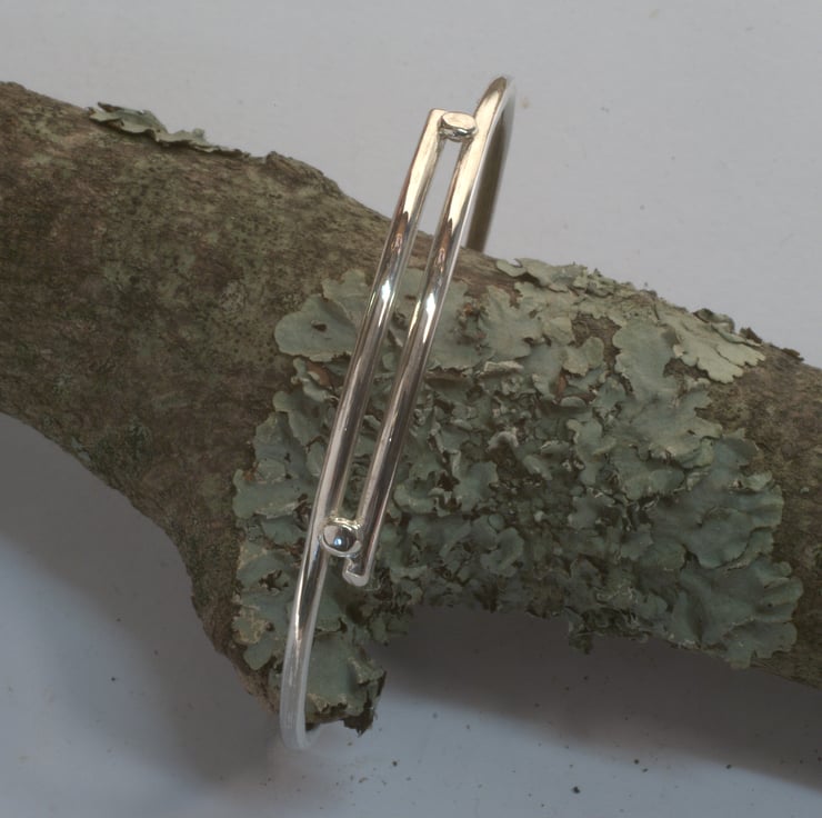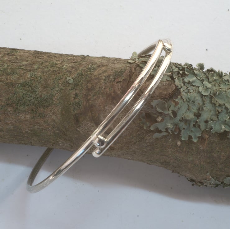 Silver bangle with overlapping section and silver ball decoration. Medium.