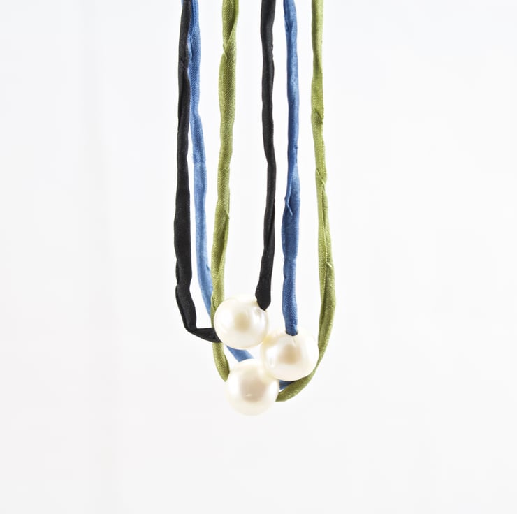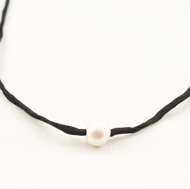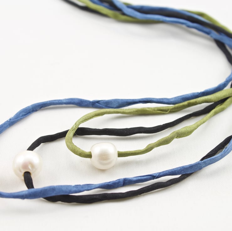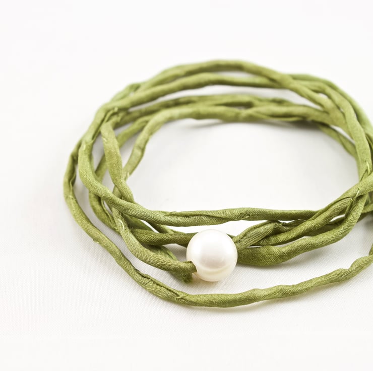 A simple and versatile accessory that can be worn as a necklace of varying lengths or as a bracelet wrap. A beautiful large white freshwater pearl sits on the silk cord which is a meter in length and can be tied off at whatever length you prefer. This contemporary item of jewellery can be used in a variety of ways and has a lovely boho vibe - great for layering with different coloured silks to match your outfit.
