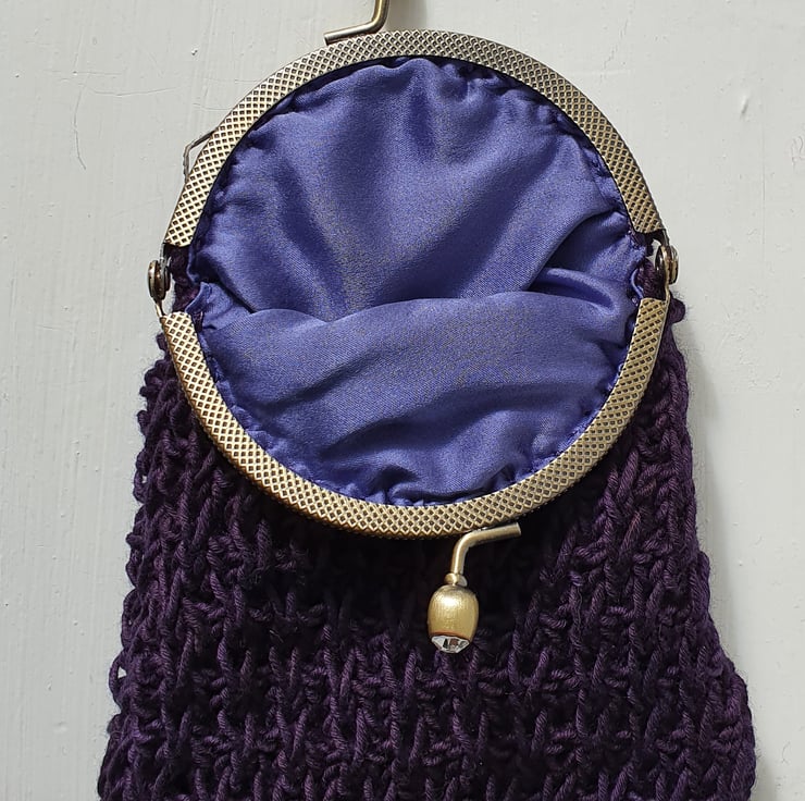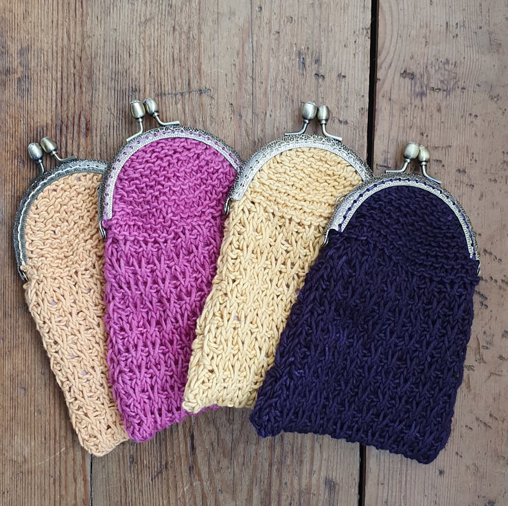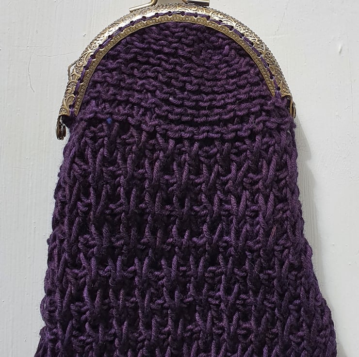 Hand-dyed, hand knitted, hand made, kiss clip purse.